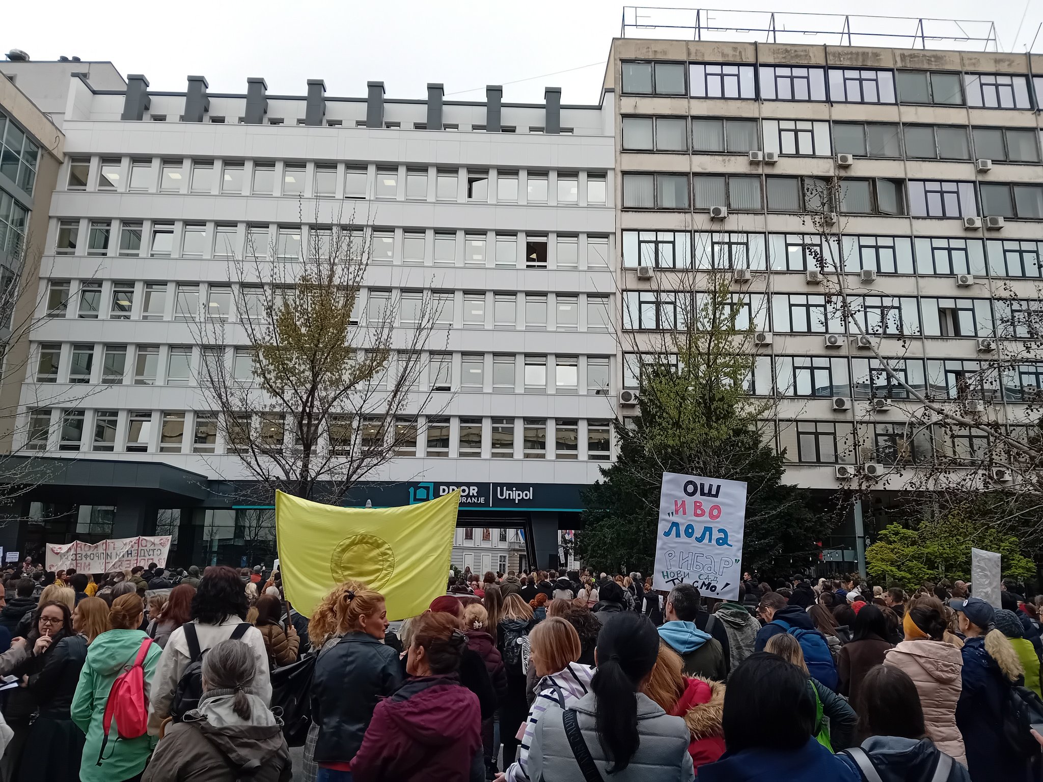 Ispred Školske uprave u Novom Sadu nešto posle 10 časova počeo je protest prosvetnih radnika koji, između ostalog, traže poboljšanje materijalnog položaja i bezbednosti učenika i zaposlenih u školama.
