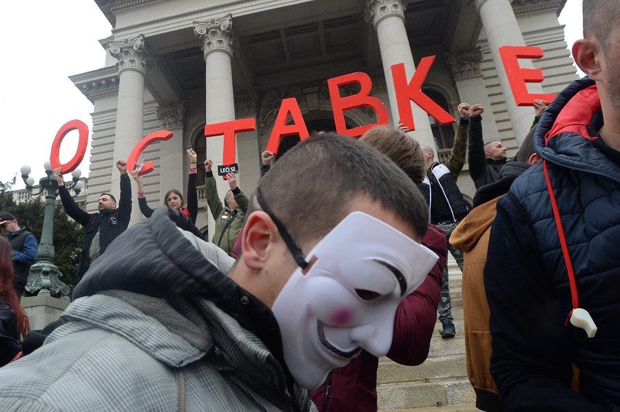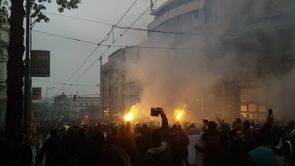 Nakon okupljanja ispred Doma Narodne skupštine i brojnih govora, pročitani su zahtevi protesta, a potom je krenula protestna šetnja do Vlade Srbije.
