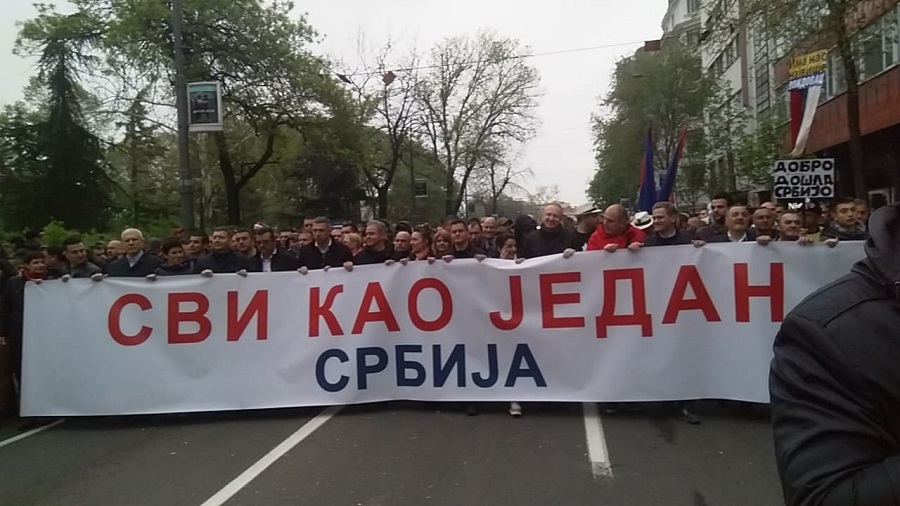 “Oni su najavili nasilje i krvoproliće, ali vi ste, dobri ljudi, pokazali dostojanstveno i normalno lice Srbije“, kazao je Obradović u kratkom obraćanju.