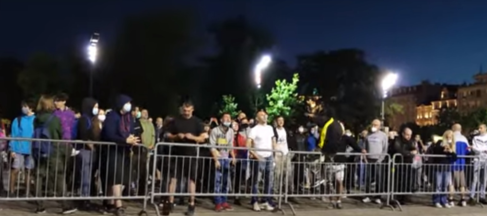 Na skupu nije bilo govornika, a okupljeni građani su stajali u grupama, nosili transparente i povremeno uzvikivali parole protiv vlasti.