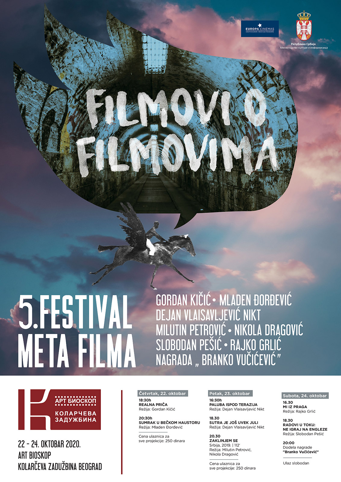 Peti festival meta filma koji se prvenstveno bavi podžanrom “filma o filmu” biće održan od 22. do 24. oktobra u Art bioskopu Kolarac u Beogradu.