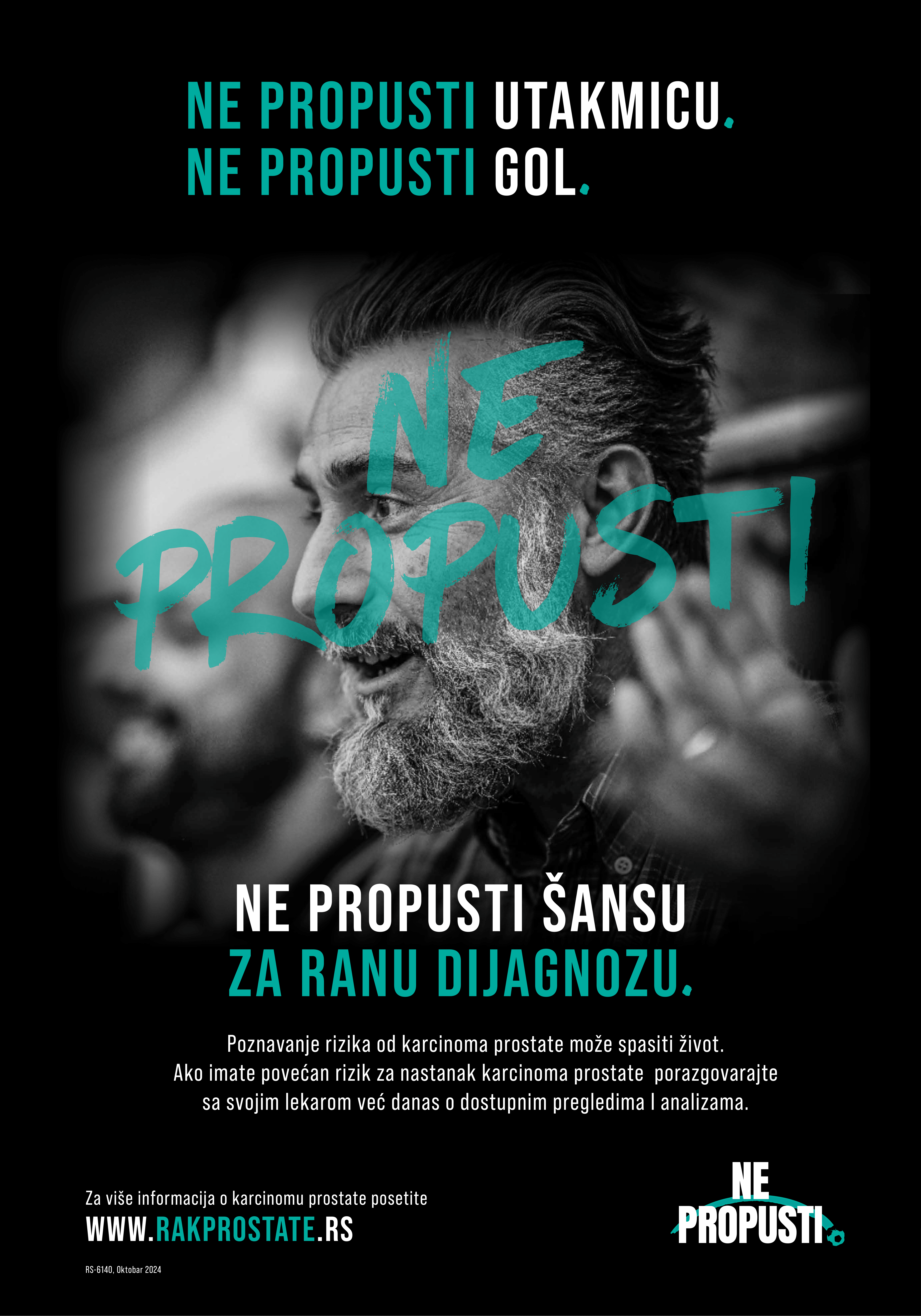 Zato je ove godine pokrenuta kampanja „Ne propusti utakmicu, ne propusti gol, ne propusti šansu za ranu dijagnozu“ kako bi motivisala muškarce da bolje razumeju sopstveni rizik od raka prostate i da, ukoliko su u rizičnoj grupi, potraže savet lekara. Povezivanjem sa sportom – univerzalnim jezikom strasti, discipline i posvećenosti – kampanja naglašava značaj pažljivog praćenja zdravlja. Kompanija AstraZeneca je, uz podršku udruženja pacijenata i udruženja lekara, pokrenula novu internet stranicu www.rakprostate.rs kako bi dodatno doprla do šire javnosti. Karcinom prostate se često razvija bez izraženih simptoma. Prepoznavanje faktora rizika može biti ključno za otkrivanje bolesti u ranom stadijumu, kada su terapijske mogućnosti brojnije i uspešnost lečenja veća. Ugrožene grupe uključuju muškarce starije od 50 godina i one sa porodičnom istorijom raka prostate, dojke, jajnika ili pankreasa.