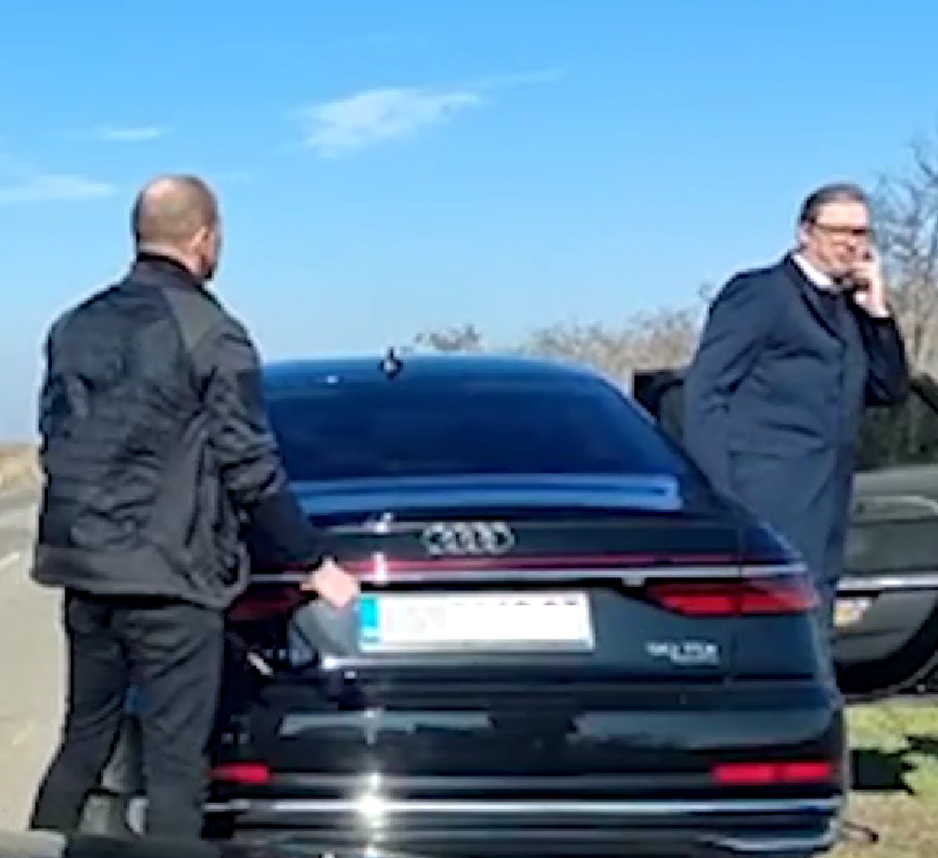 Potom iz automobila izlazi i Vučić koji telefonira.