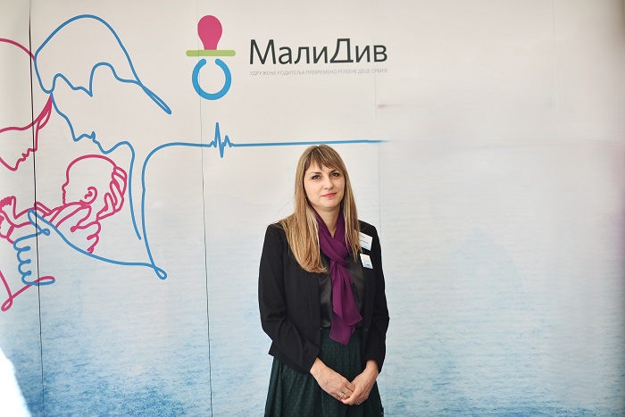 “Udruženja Mali Div od 2010. godine radi na poboljšanju položaja porodica prevremeno rođene dece. Orijentisani smo pre svega na podršku roditeljima u prevazilaženju izazova na koje nailaze kako u prvim danima nakon prevremenog porođaja, tako i u godinama nakon toga, tokom kojih velika većina prevremeno rođene dece ima razvojne smetnje. Cilj radionica koje organizujemo je direktna pomoć roditeljima, dok je Mini park Malih Divova od 17 stabala u Parku Manjež, pre svega namenjen da podseti roditelje prevremeno rođene dece da nisu sami. Istovremeno, ovaj mini park je i način da utičemo na podizanje svesti javnosti o važnosti podrške cele zajednice i države porodicama prevremeno rođene dece,” kaže Vera Bikicki Ivezić, predsednica Udruženja “Mali Div”.