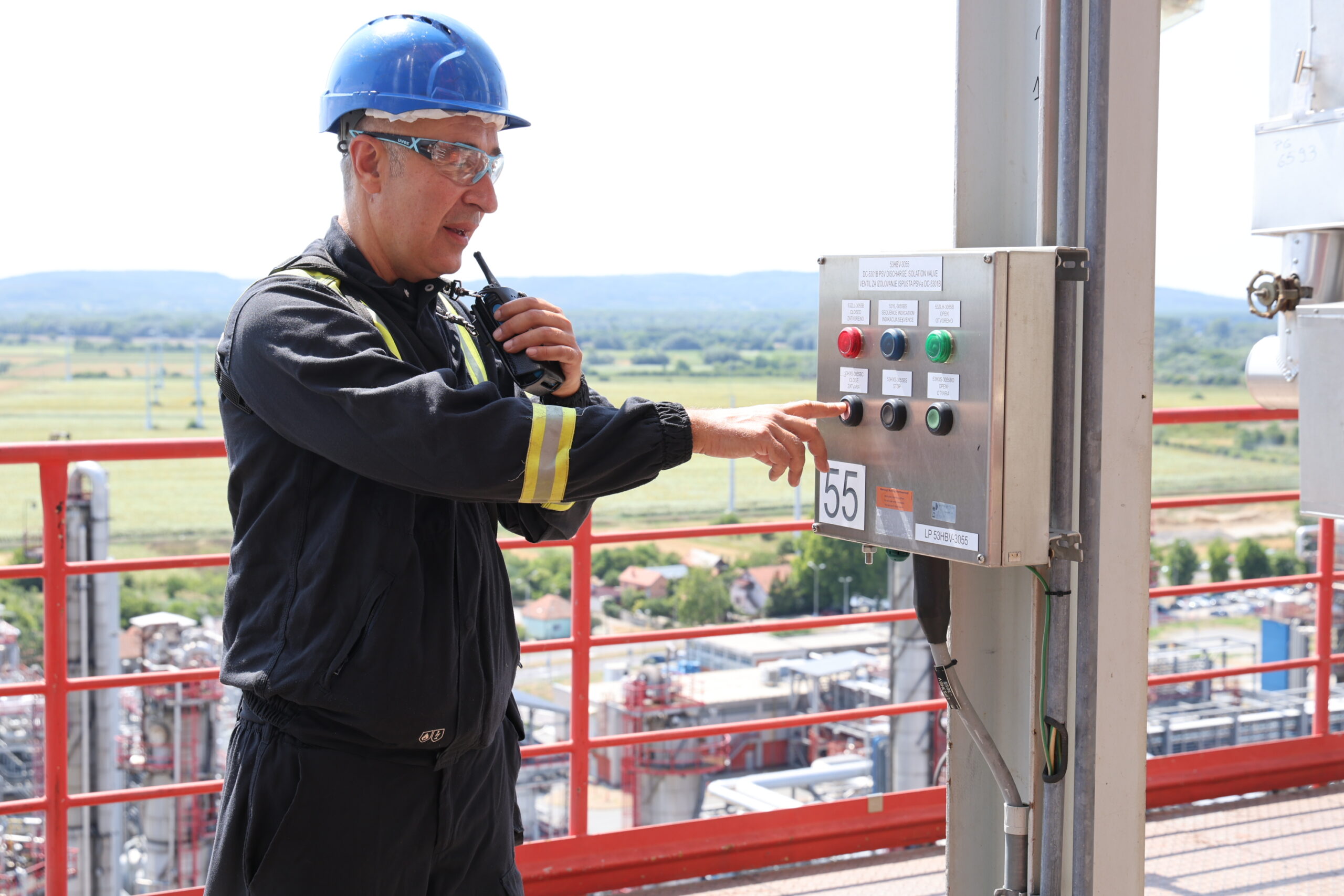 Radno mesto Ivana Vasilja je sve samo ne uobičajeno. On radi na visini od 90 metara, iznad jednog od najkompleksnijih i najsavremenijih industrijskih pogona u regionu, na postrojenju “Duboka prerada” u Rafineriji nafte Pančevo. Rad na visini je u opisu Ivanovog svakodnevnog posla, a odgovoran je za proces koji se realizuje samo na jednom mestu u Srbiji – u Rafineriji nafte Pančevo gde Ivan radi na sečenju naftnog koksa.