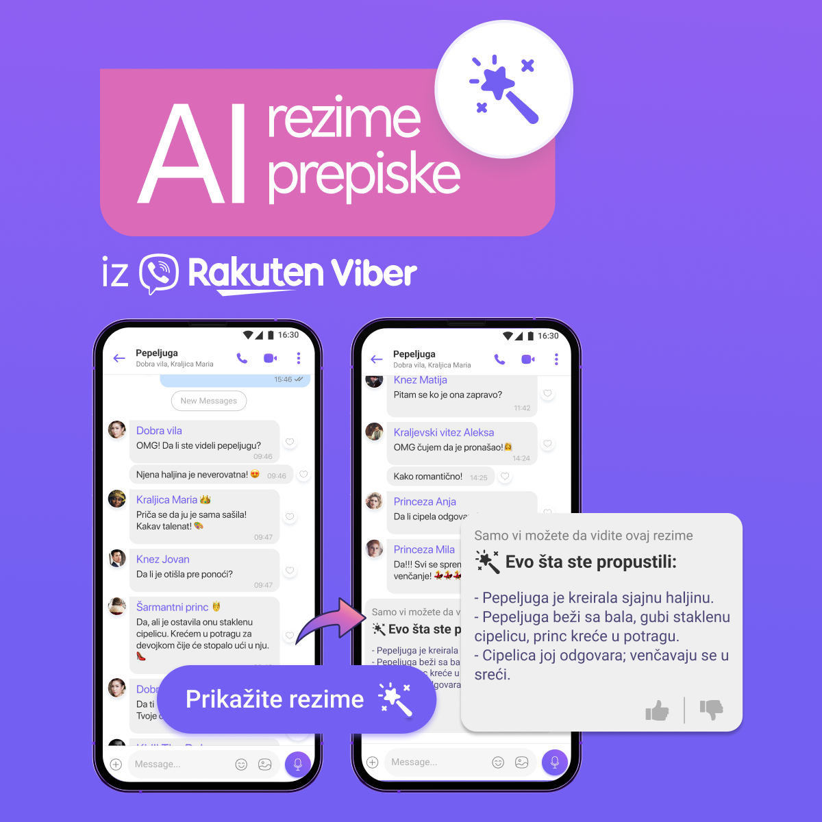 Rakuten Viber, vodeća globalna platforma za privatnu i bezbednu razmenu poruka i glasnovnu komunikaciju iskoristila je Open AI tehnologiju u svojoj najnovijoj funkciji baziranoj na veštačkoj inteligenciji, koja korisnicima kreira rezime prepiske iz nepročitanih poruka unutar Viber grupa. Razvijeno da zadovolji potrebe miliona korisnika koji dnevno ne postižu da pročitaju ili odgovore na sve poruke, ovo vrhunsko rešenje nudi besprekoran i brz način da se osnovne informacije iz do 100 nepročitanih poruka u prepiskama filtriraju u pogodni rezime.