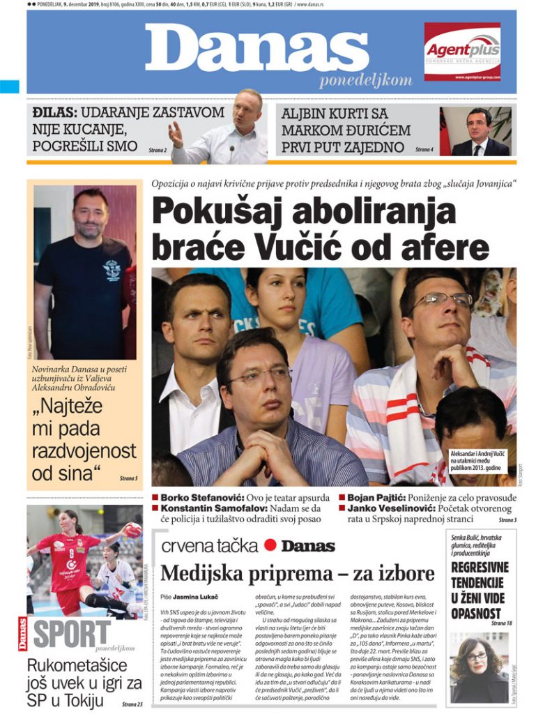 NASLOVNE STRANE DNEVNIH NOVINA: