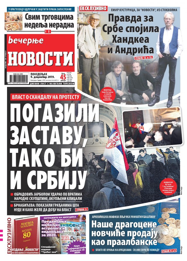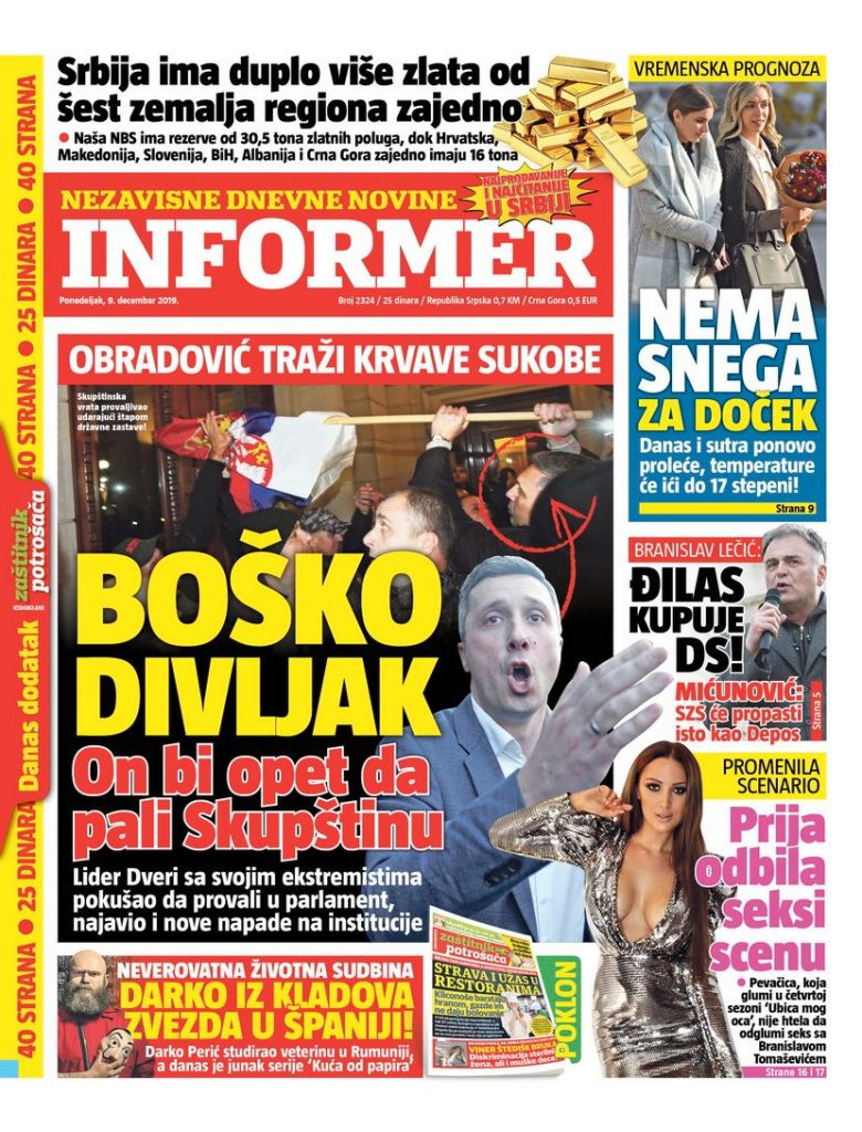 ĐILAS: TREBA REĆI DA SMO POGREŠILI; OBRADOVIĆ NAJAVIO NOVE PERFORMANSE – Predsednik Stranke slobode i pravde Dragan Đilas izjavio je da je ideja organizatora subotnjeg protesta „Jedan od pet miliona“ u Beogradu bila „kucanje na vrata“ Skupštine Srbije, a „ne bilo kakav upad“.