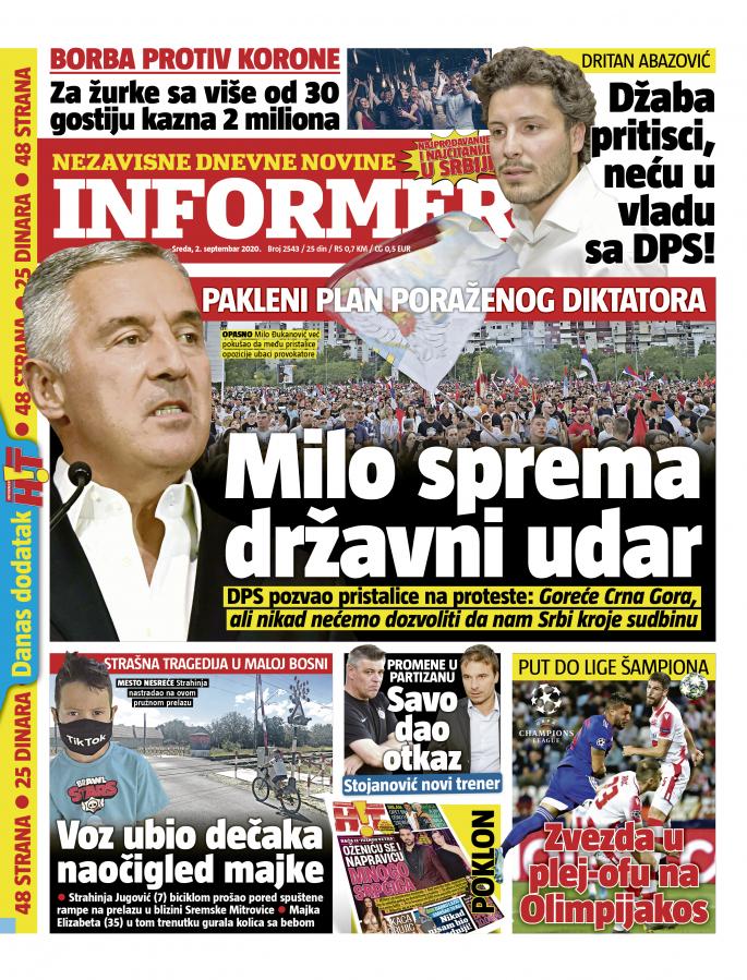 On je naveo da ako ovi novi, misleći na opoziciju koja je osvojila većinu na izborima, “ne budu slušali narod lećeće s vlasti lakše nego Milo, u to sam siguran”.