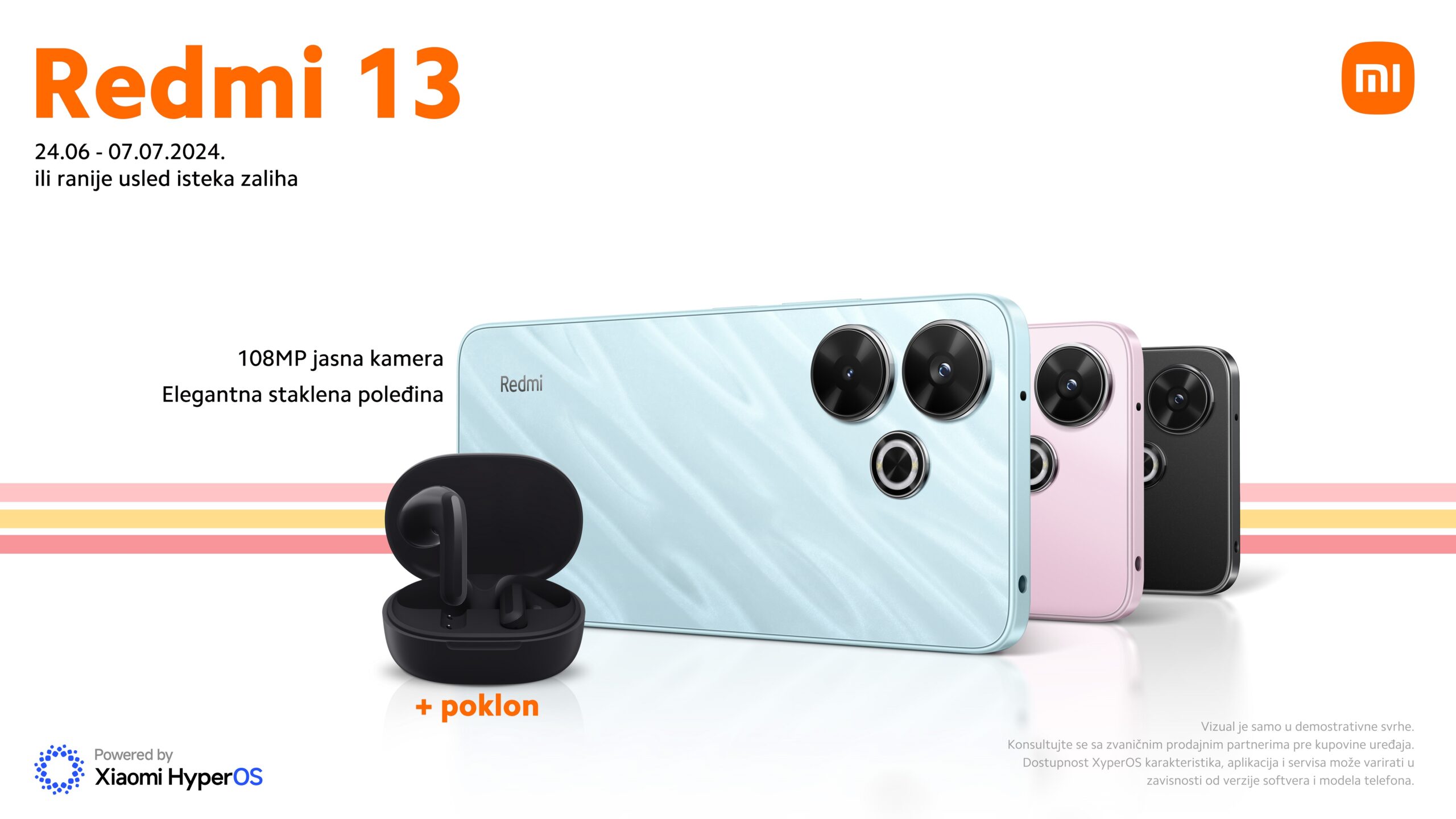 Redmi 13, najnoviji uređaj Redmi portfolija, koji postavlja novi standard kada su u pitanju pristupačni pametni telefoni, stigao je i na naše tržište. Dizajniran da odgovori na sve zahteve korisnika koji traže stil i funkcionalnost, Redmi 13 donosi elegantan, moderan dizajn pun unapređenih funkcija koje prevazilaze očekivanja. Jedna od ključnih karakteristika ovog telefona je njegova glavna kamera od 108MP, koja omogućava korisnicima da zabeleže fotografije sa izuzetnom jasnoćom i detaljima. Idealan je za ljubitelje fotografije, kreatore sadržaja i sve one koji žele da sačuvaju svoje životne trenutke u visokoj rezoluciji. Sa elegantnim dizajnom, velikim AdaptiveSync ekranom sa osvežavanjem do 90Hz1 i podrškom za brzo punjenje od 33W2, Redmi 13 predstavlja korak napred za Redmi seriju, koji ističe posvećenost kompanije Xiaomi u pružanju izuzetne vrednosti svojim korisnicima.