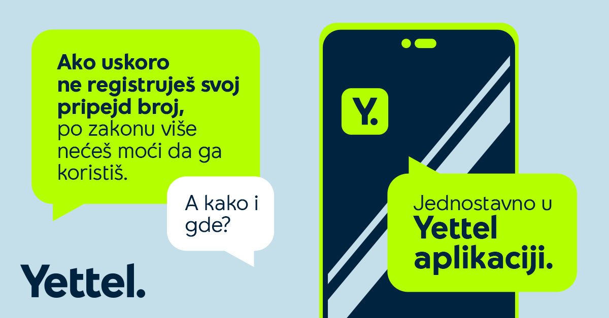 „Želimo da pomognemo korisnicima da što pre registruju svoj pripejd broj kako bi mogli da nastave da ga koriste. Zato smo omogućili da ovaj proces obave intuitivno, potpuno digitalno i brzo u našoj aplikaciji. Proces identifikacije obavlja se u nekoliko koraka, bez odlaska u prodavnicu. Potrebno je da korisnici fotografišu svoj lični identifikacioni dokument, ličnu kartu ili pasoš, a potom svoje lice, što je u skladu sa standardima identifikacije na daljinu. Nakon uspešne registracije, mogu da dobiju i neku od brojnih pogodnosti koje smo pripremili“, kaže Aleksandra Mišić Dodić, direktorka marketinga i digitalizacije u Yettelu.