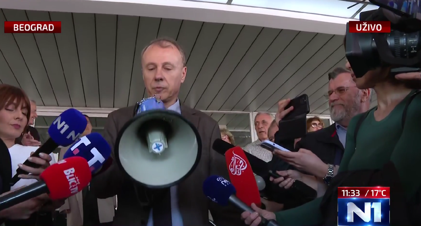 Rektor Vladan Đokić, nakon 2 i po sata davanja izjave, izašao je ispred policijske stanice i obratio se prisutnim građanima.
