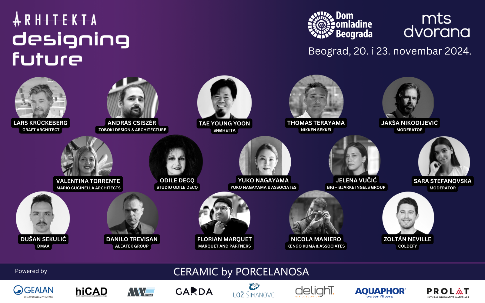 Pridružite se glavnim govornicima iz vodećih arhitektonskih firmi, uključujući Larsa Kruckeberga (GRAFT Architects), Valentinu Torrente (Mario Cucinella Architects) i Iuko Nagayamu (Yuko Nagayama & Associates), koji su bili na čelu integracije tehnologije, održivost, i dizajn.