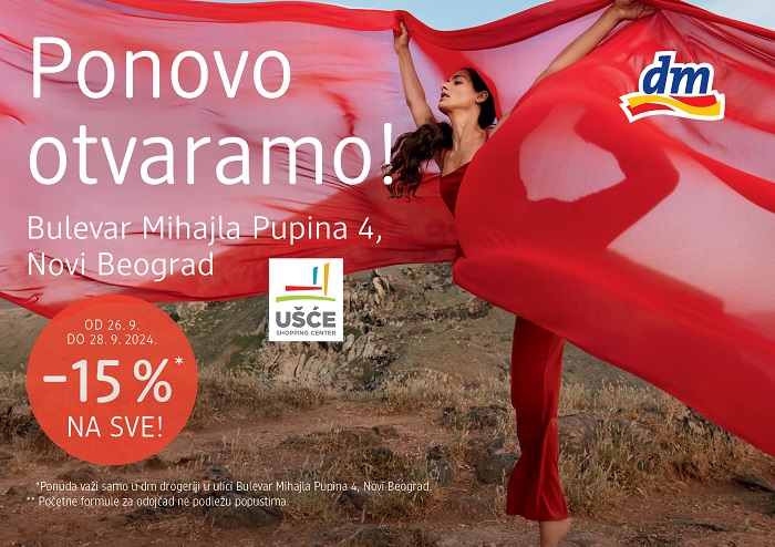 Na dobro poznatoj lokaciji tržnog centra Ušće na Novom Beogradu, ponovo je otvorena jedna od najomiljenijih dm drogerija u gradu! I ovog puta, novo dm otvaranje propraćeno je humanitarnom notom, te će vodeći drogerijski lanac donirati  čak million dinara Centru za brigu o starima, deci i osobama sa invaliditetom „Novi Beograd”.