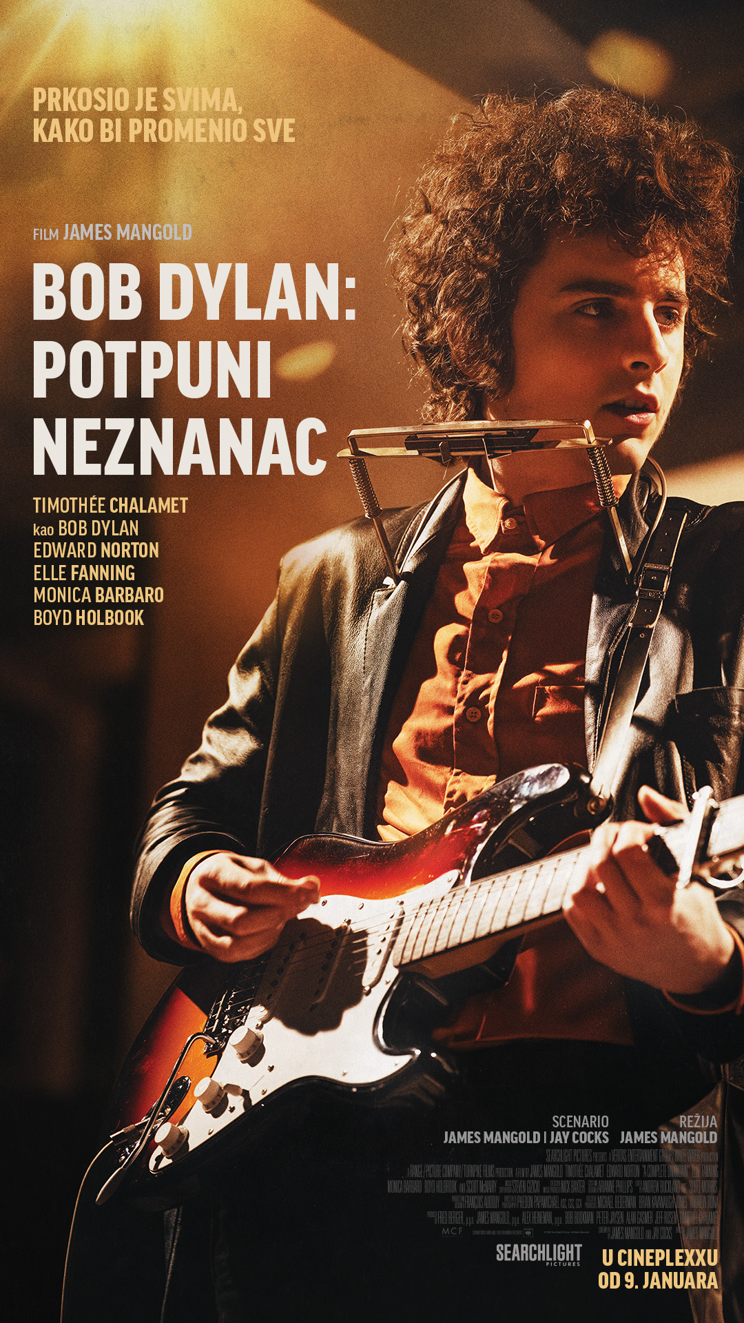 - „BOB DYLAN: POTPUNI NEZNANAC” – Ranih 60-ih godine u Njujorku, u pozadini živopisne muzičke scene i kulturnih preokreta, tajnoviti mladi devetnaestogodišnjak stigao je iz Minesote u Vest Vilidž, sa svojom gitarom i revolucionarnim talentom, predodređen da promeni tok američke muzike. Dok, tokom svog uspona do slave, uspostavlja najintimnije veze, odbija da bude striktno definisan, donoseći kontroverzan izbor koji odjekuje širom sveta.
