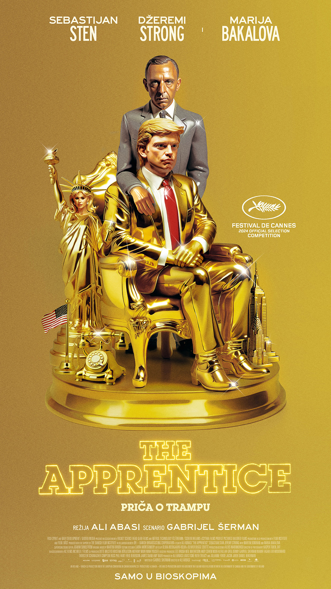 „THE APPRENTICE – PRIČA O TRAMPU” – U Njujorku 1970-ih, ambiciozni građevinski mogul Donald Džon Tramp se trudi da izađe iz senke svog moćnog oca. Na počecima svoje karijere upoznaje Roja Kona, političkog fiksera koji mu postaje glavni mentor. Kon uči Trampa kako da stekne bogatstvo i moć putem prevare, zastrašivanja i medijske manipulacije. Ostatak je više od istorije. To je trenutna stvarnost.