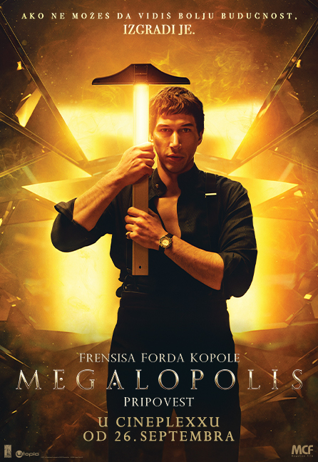 - „MEGALOPOLIS“ – Grad Rim se mora promeniti, izazivajući time konflikte između Cezara Kataline, genijalnog umetnika koji nastoji da uskoči u utopsijku budućnost i njegovog protivnika, gradonačelnika Frenklina Cicerona posvećenog regresiji, održavanju pohlepe i posebnih interesa. Razapeta između njih je Julija Ciceron socijalistkinja, gradonačelnikova ćerka, čija je ljubav prema Cezaru podelila njenu lojalnost primoravajući je da sazna šta je to što čovečanstvo zaista zaslužuje.