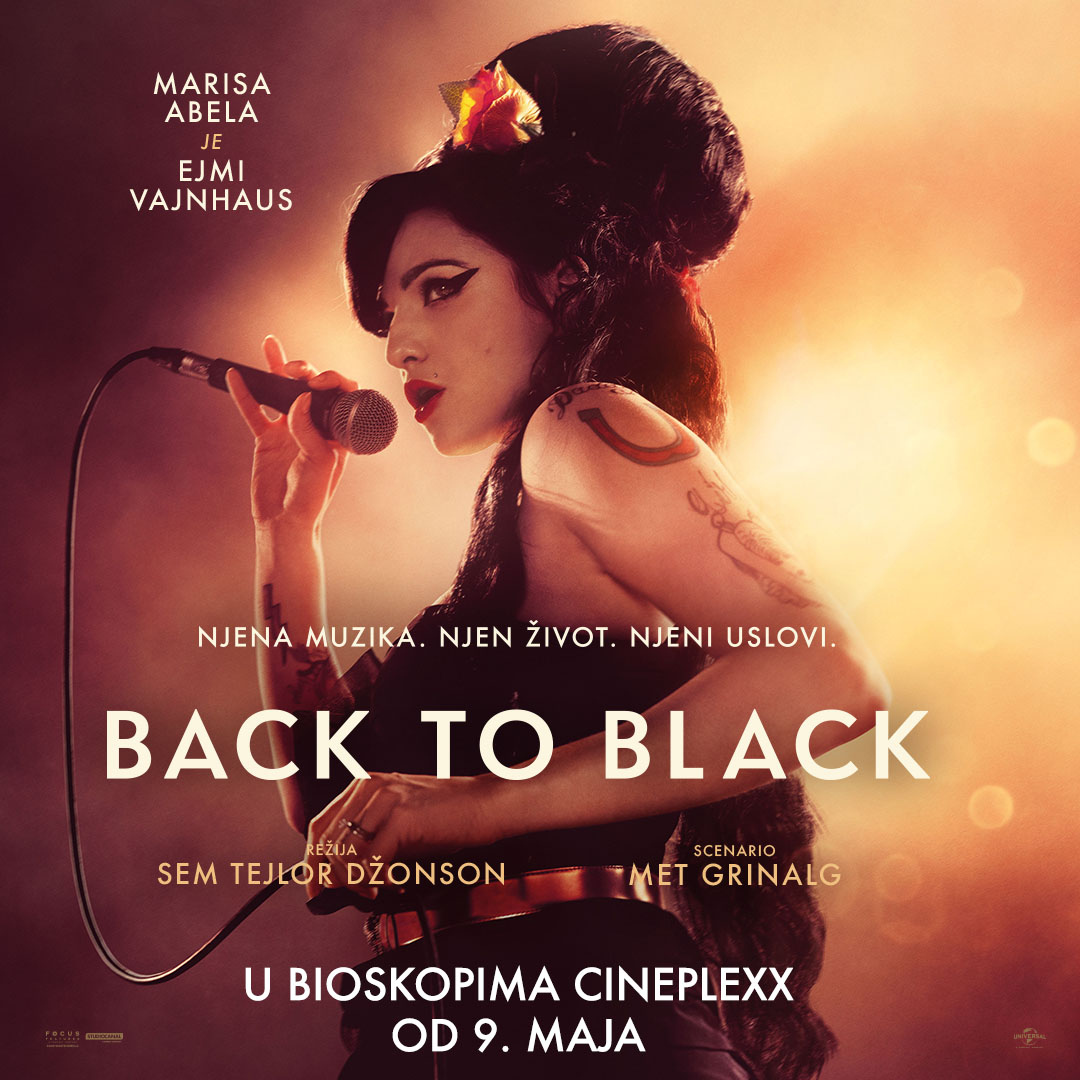 - „BACK TO BLACK“ – Izvanredna priča o Ejmi Vajnhaus, od početka karijere do revolucionarnog studijskog albuma BACK TO BLACK. Ispričan iz njene perspektive i inspirisan duboko ličnim tekstovima koje je pisala, ovaj film je izuzetan portret žene koja stoji iza jednog fenomena i burne veze koja je centar jednog od najlegendarnijih muzičkih albuma svih vremena.