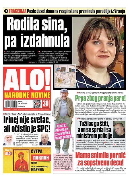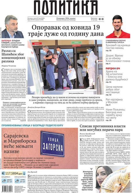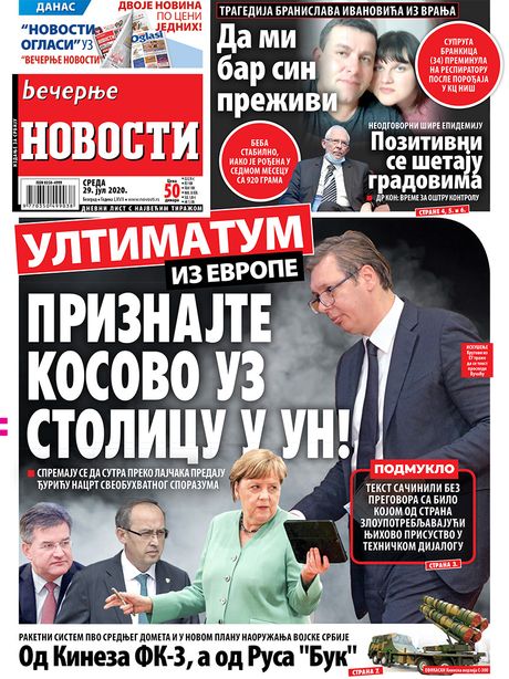 NASLOVNE STRANE DNEVNIH NOVINA: