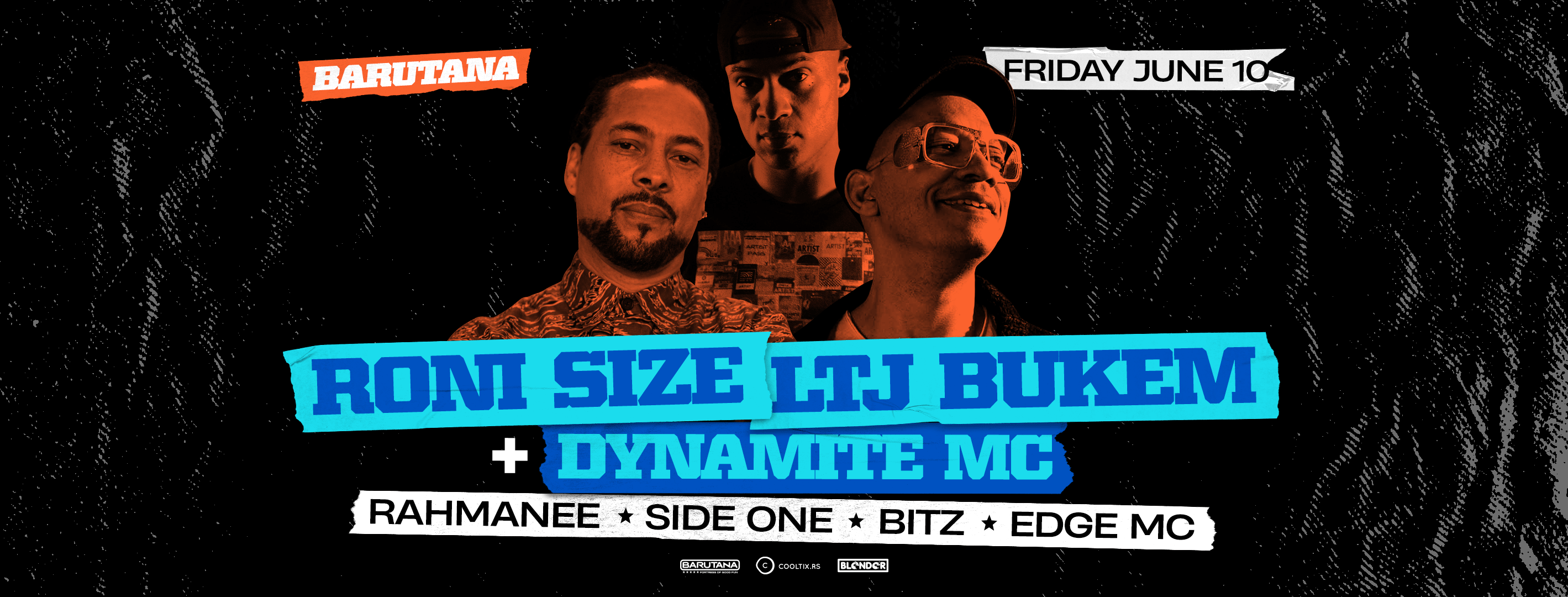 Apsolutne legende drum’n’bassa Roni Size i LTJ Bukem imaće svoj prvi zajednički nastup u Barutani, ovog petka, uz pratnju Dynamite MC-ja, jednog od najvećih imena sa svetske scene. Njima će se pridružiti i ozbiljna domaća postava u sastavu: Rahmanee, Side 1, Bitz i Edge MC.