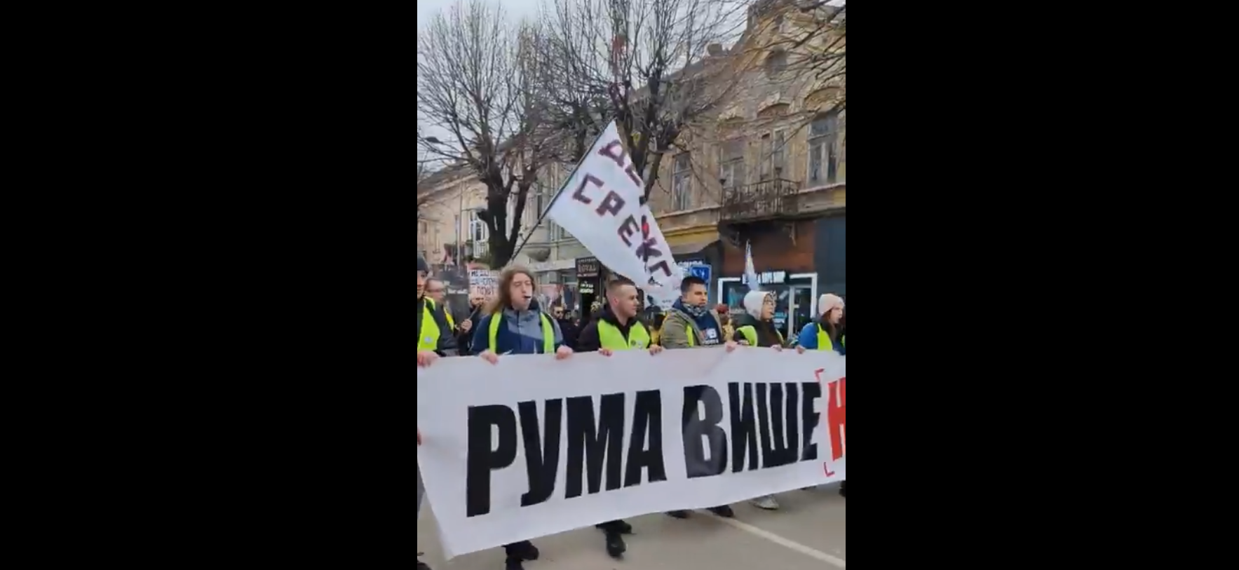 Kako prenosi 021, učesnici marša nose veliki transparent „Ruma više ne ćuti“, a ljudi ih usput dočekuju bogatim posluženjem.