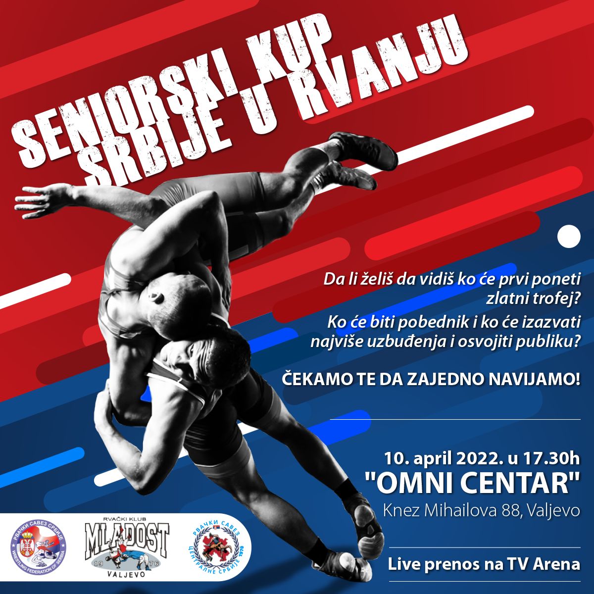 Rvački savez Centralne Srbije i Rvački klub „Mladost“, članovi Rvačkog saveza Srbije, organizuju seniorski KUP u rvanju u Valjevu 10. aprila 2022. godine od 17:30 časova u velikoj sali „Omni Centra“. Na mečevima će se naći i svetski šampioni braća Viktor i Mate Nemeš, Branko Kovačević osvajač bronzane medalje na Svetskom i Evropskom prvenstvu U23, Sebastijan Nađ i još mnogi drugi pa su kvalitetne i atraktivne borbe, iz kojih mladi sportisti mogu mnogo toga da nauče, zagarantovane.