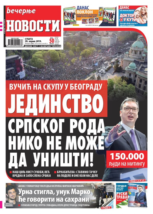VUČIĆ NA MITINGU SNS U BEOGRADU – U Beogradu je juče održan miting SNS u okviru kampanje predsednika Srbije „Budućnost Srbije“, na kom je Aleksandar Vučić poručio da