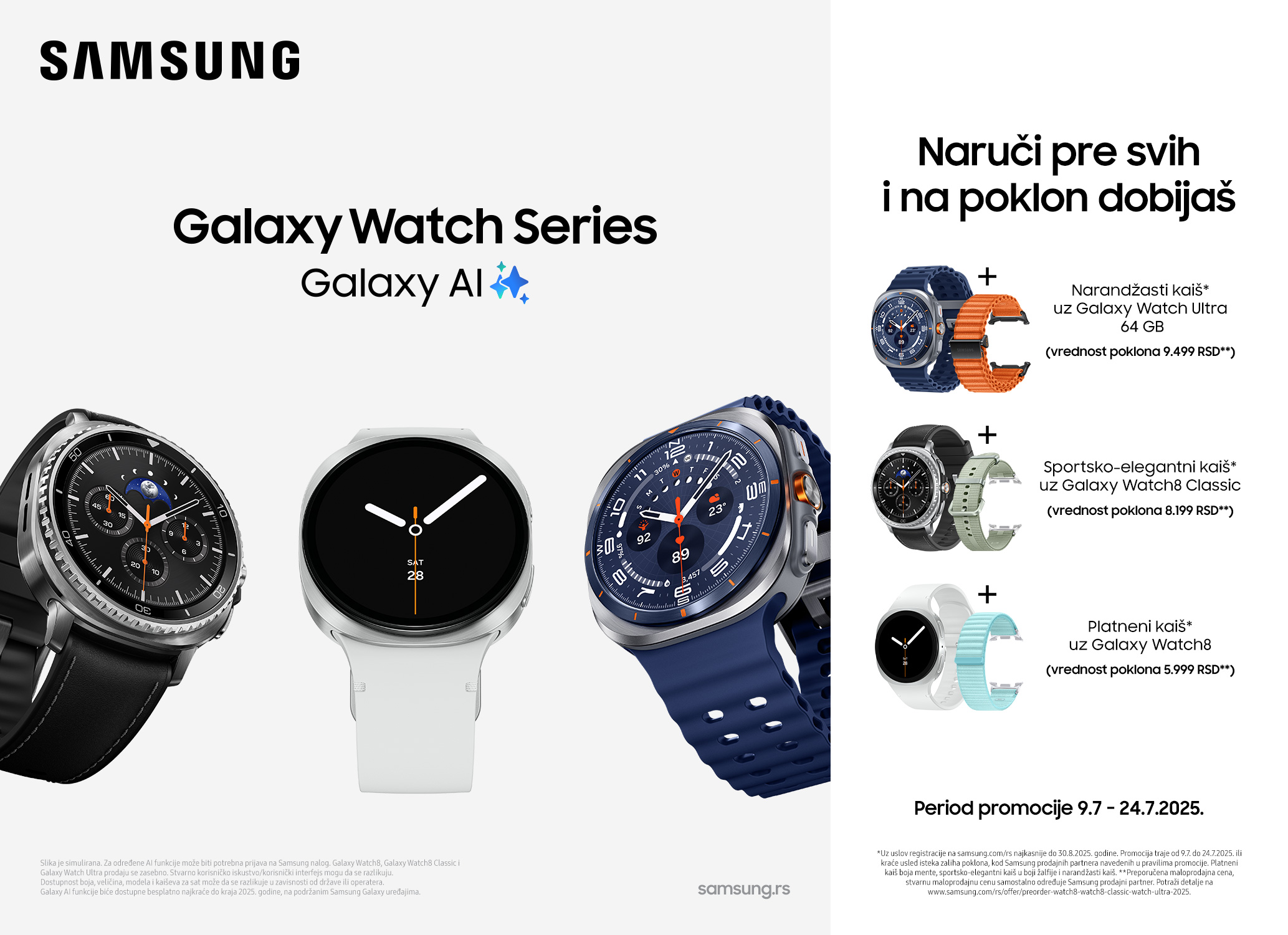 Više informacija o Galaxy Watch8 dostupno je na stranicama https://www.samsung.com/rs/.