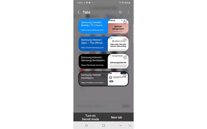 Najnovije ažuriranje Samsung web pretraživača uključuje i nekoliko poboljšanja za celokupno korisničko iskustvo poput mogućnosti povlačenja i ispuštanja kartica u prilagođene grupe kartica. Ovo poboljšanje čini navigaciju i organizaciju različitih kartica bržom i jednostavnijom.