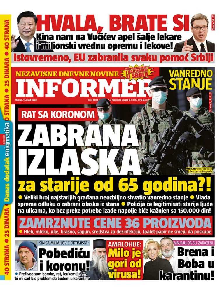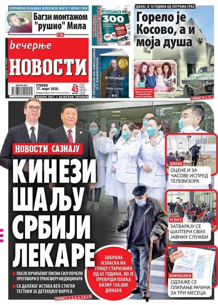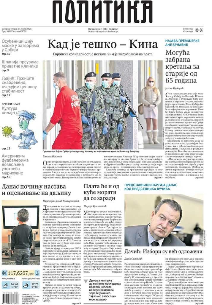 NASLOVNE STRANE DNEVNIH NOVINA: