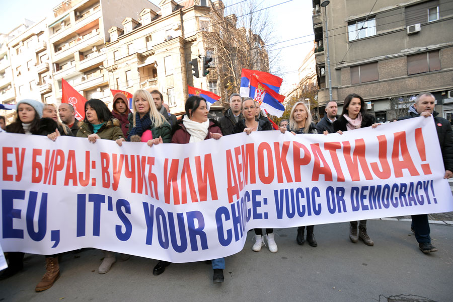 Vuk Jeremić je ranije danas rekao da cilj okupljanja nije nasilje, već da se simbolički ukaže na to da Javni servis, kako je rekao, ne vrši svoju funkciju koja je predviđena zakonom.
