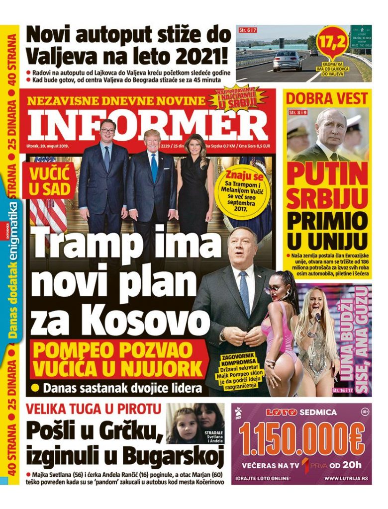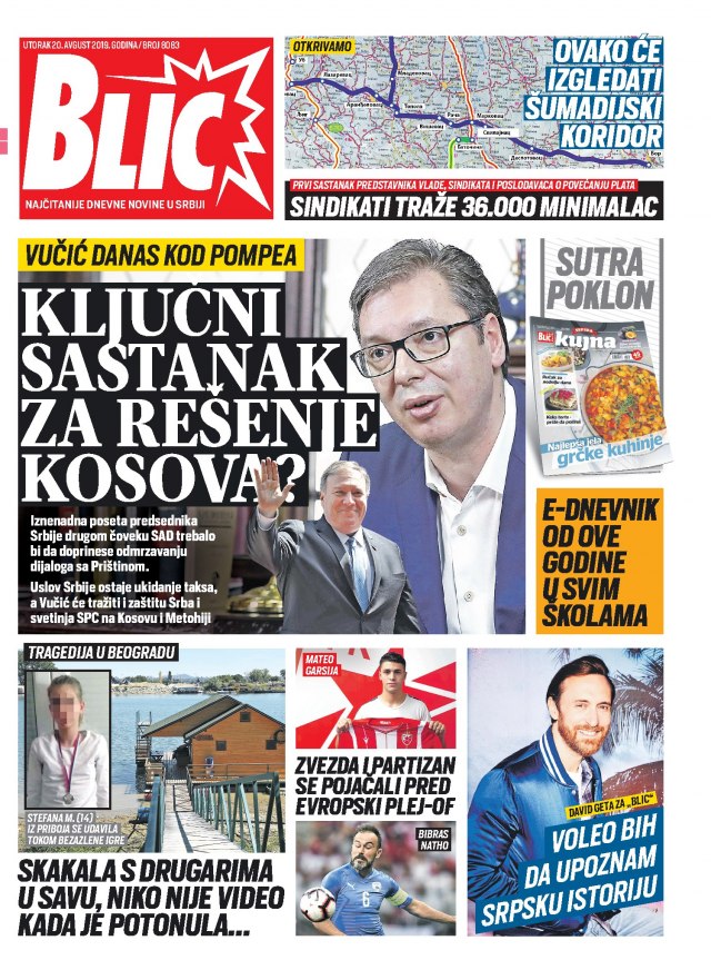 VUČIĆ SA POMPEOM O TAKSAMA? – Susret predsednika Srbije Aleksandra Vučića i američkog državnog sekretara Majka Pompema biće suštinski, a ne samo formalnog karaktera, piše današnji Blic.