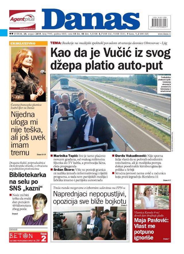 NASLOVNE STRANE DNEVNIH NOVINA: