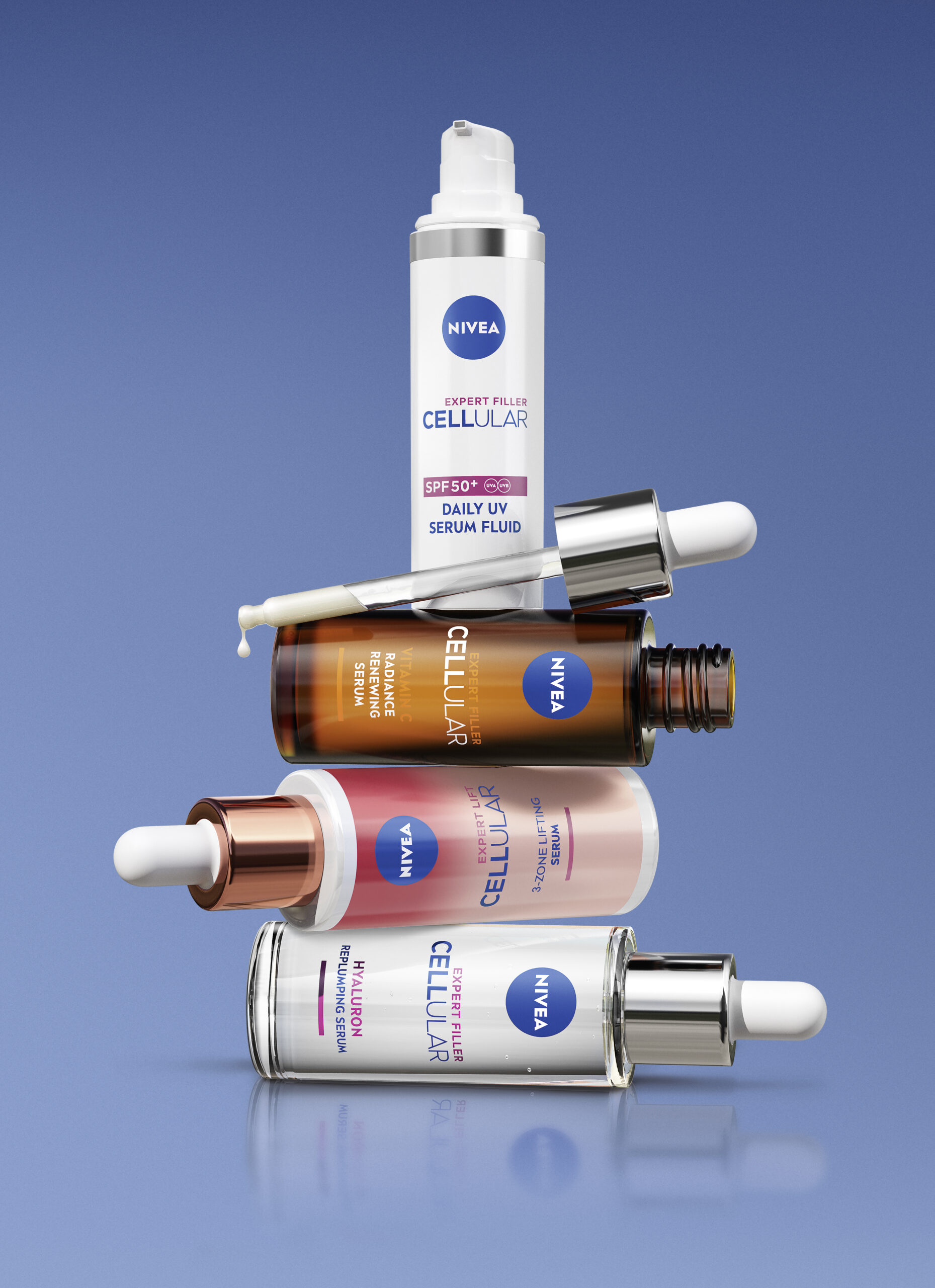 NIVEA Cellular Expert Filler SPF 50+ dnevni UV serum fluid završni je detalj svake rutine slojevitog nanošenja seruma. S visokim zaštitnim faktorom pouzdano štiti kožu od štetnog UV zračenja, trenutno hidrira kožu i smanjuje znakove starenja kože.
