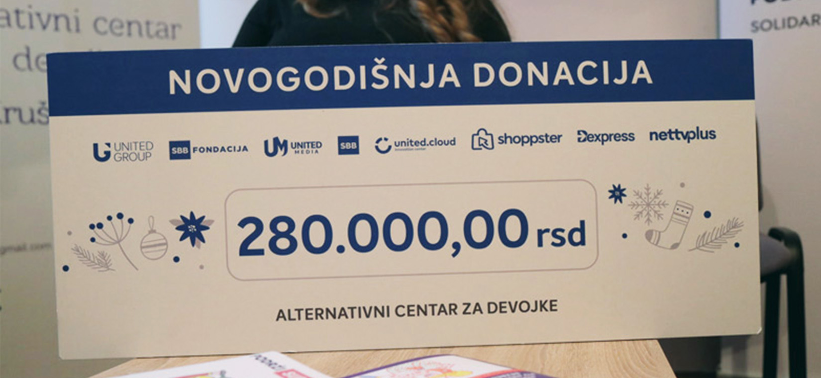 Tradicionalna donacija u vrednosti od 10.000 evra biće upućena u četiri organizacije u Srbiji, uz usluge SBB interneta i televizije, kao i 600 novogodišnjih paketića koje su prema željama dece iz pomognutih ustanova i onih koje Fondacija podržava u okviru projekta „Jezgro“, omogućili zaposleni u kompanijama United Grupe u Srbiji.