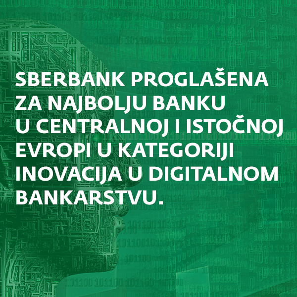 Britanski magazin „The Banker“, deo „Financial Times Group“, prepoznao je Sberbank kao najbolju banku u regionu Centralne i Istočne Evrope u kategoriji inovacija u digitalnom bankarstvu. Banka je osvojila nagradu za najbolju banku u Centralnoj i Istočnoj Evropi u kategoriji „Inovacije u digitalnom bankarstvu“ na događaju „Nagrade za inovacije u digitalnom bankarstvu 2020“ („Innovation in Digital Banking Awards 2020“). Banka je primila prestižnu nagradu za tri svoja projekta, uključujući biometrijske skenere na bankomatima, platformu za fakturisanje komunalnih usluga BRIS i alrgoritamske naloge u sistemu „Sberbank Markets E-Commerce“.