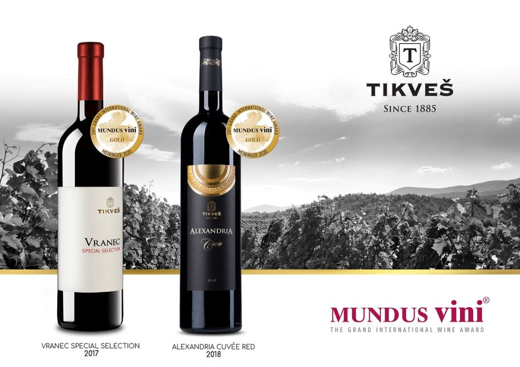 Tikveš vina Vranec Special Selection 2017 i Alexandria Cuvѐe Red 2018 osvojili su zlatne medalje, na prestižnom takmičenju Mundus Vini Spring Tasting 2020 u Nemačkoj. U konkurenciji je bilo više od 7.500 vina, a ocenjivalo ih je 268 vinskih stručnjaka iz celog sveta,.