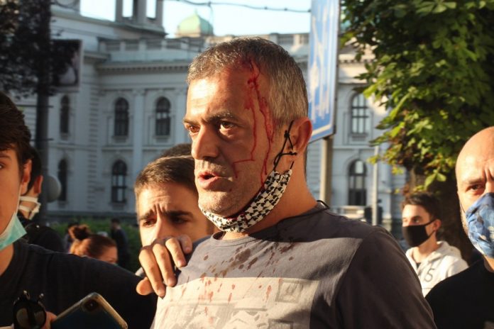 Grupa mladića koji su došli na protest ispred Skupštine Srbije napala je lidera Pokreta slobodnih građana Sergeja Trifunovića, prenose mediji.