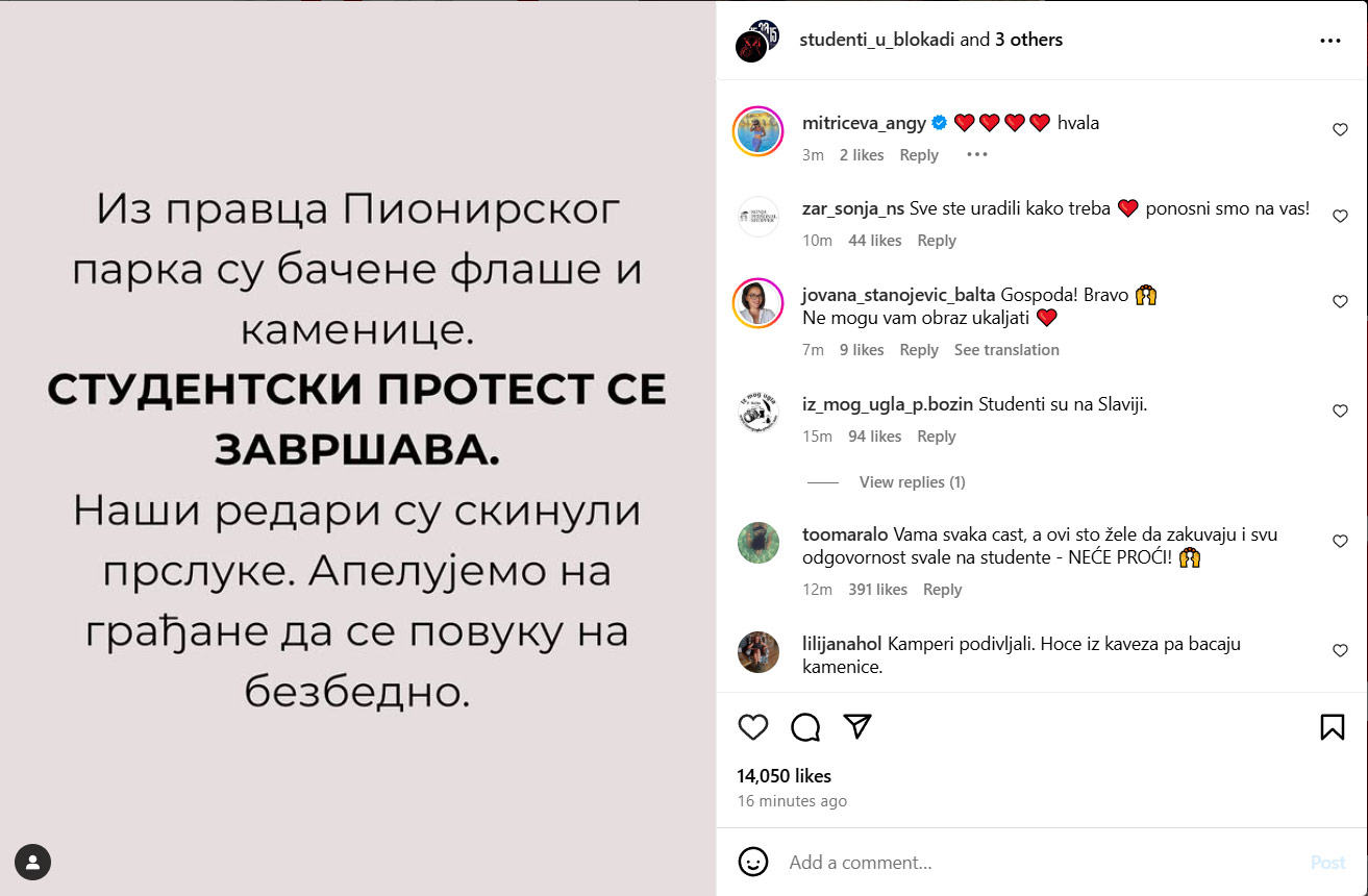 Studenti su potom proglasili kraj protesta. Studetni se povlače na fakultete.