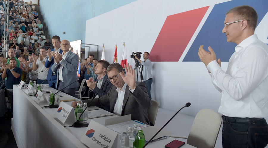 „Vi, stranci, dobrodošli dragi ste nam gosti, a da srušite Srbiju da dobiju vlast oni koji nisu dobili narodno poverenje – sikter!, od toga nema ništa. Srbija će da čuva svoju slobodu, nezavisnost i suverenitet“, istakao je Vučić uz gromoglasan aplauz prisutnih u hali Pinki u Zemunu.