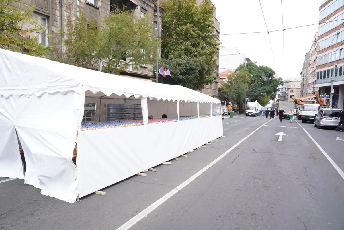 Pristalice Aleksandra Vučića postavljaju šatore u Takovskoj ulici ispred RTS i Glavne pošte.