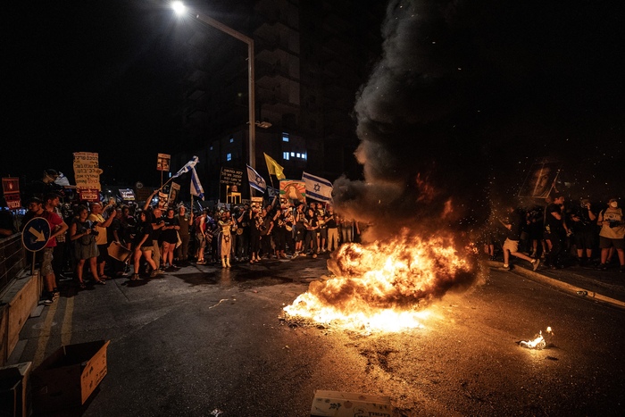 Demonstranti su zapalili vatru ispred zgrade sindikata i pozvali predsedavajućeg Arnona Bar-Davida da pozove na opšti štrajk i „zatvori“ ekonomiju Izraela, kako bi se izvršio pritisak na vladu da postigne sporazum s islamističkim Hamasom i oslobodi oko 120 još uvek zatočenih talaca.