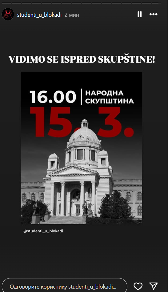 Nakon toga su studenti u blokadi objavili kratko: Vidimo se ispred Skupštine.