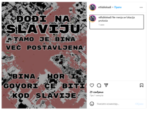 Nakon toga je objava obrisana sa Instagrama, a zatim psotavljena nova za koju se kaže da je bina već postavljena na Slaviji i da se lokacija protesta ne menja.