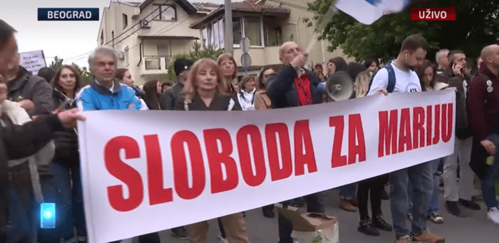 Ispred zatvora, građani drže transparent „Sloboda za Mariju“.