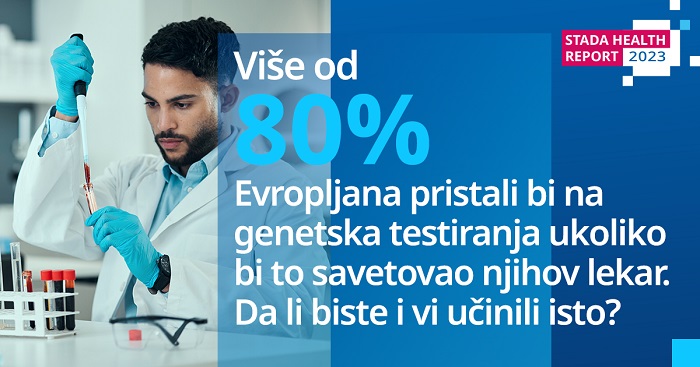 Štadin Zdravstveni izveštaj otkriva da većina Evropljana ima pozitivan stav po pitanju genetskih testiranja. Međutim, 14% onih koji bi pristali na testiranje ukoliko bi to bio zahtev njihovog lekara, kažu da se ne bi osećali dobro pri pomisli da se ispituje specifičnost njihovih gena. Svaki peti Evropljanin izričito bi odbio genetsko ispitivanje, od kojih 12 % kao glavni razlog navode da ne žele da znaju niti da se opterećuju potencijalnim rizicima za budućnost koji se i ne moraju ostvariti.