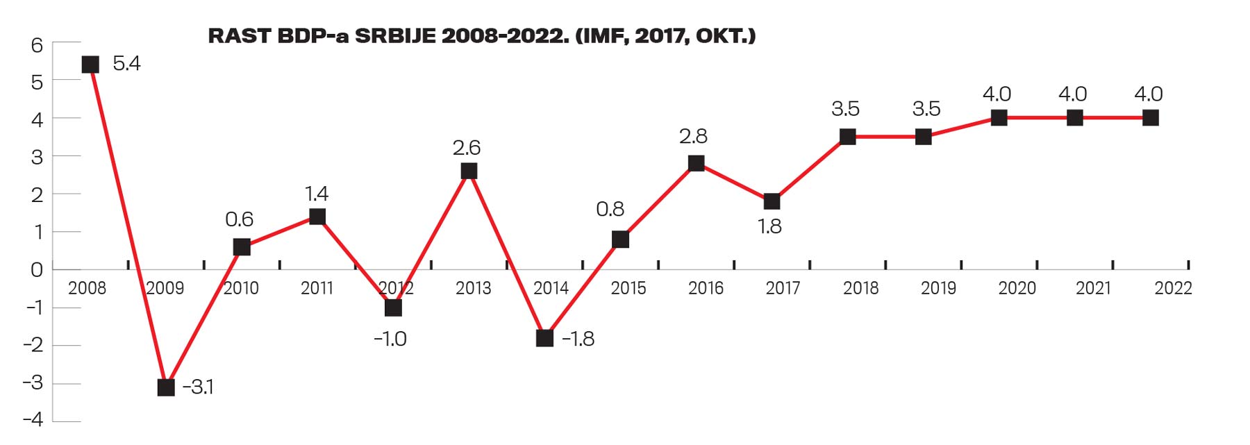 Kada je krajem 2008. globalna ekonomska kriza započela sa bankrotom Lehman Brothersa, automatski pogodivši već ranjivu Srbiju, malo ko je pomišljao da nas čeka izgubljena decenija. Osam godina privredna aktivnost u Srbiji je stagnirala, kao i prosečne plate, odnosno životni standard. Ostvaren nivo privredne aktivnosti u 2017. veći je od pretkriznog za samo 3,8%, dok je u odnosu na daleku 2000. kumulativan rast tek 64,2%