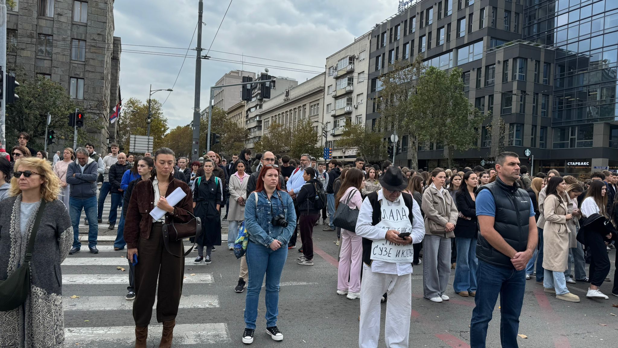 Na ulici se nalaze obični građani, neki su došli čak iz Novog Sada, ima tu i gimnazijalaca iz XIV beogradske gimnazije koji drže transparent sa natpisom „Računajte na nas“.