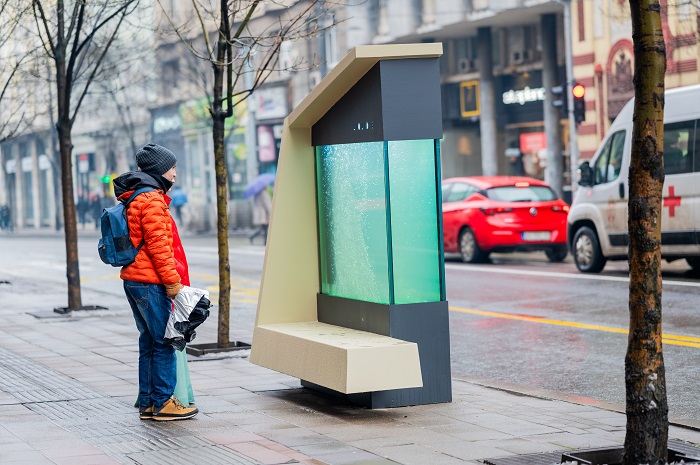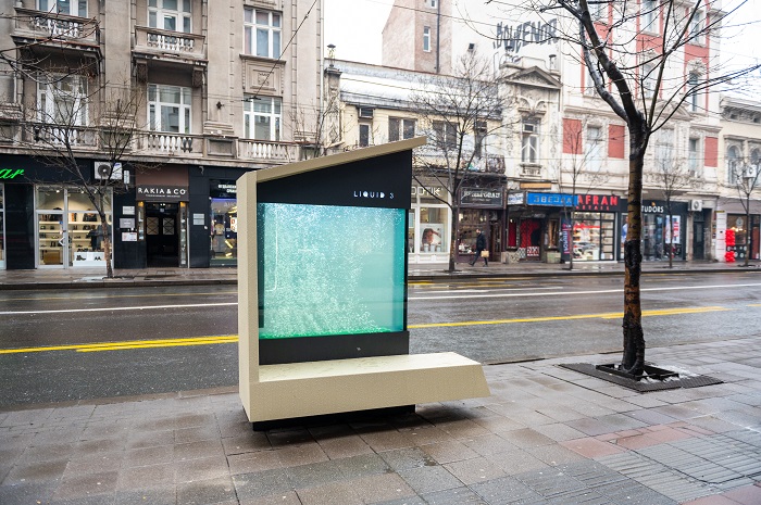 Prvi urbani foto-bioreaktor u Srbiji, LIQUID 3, postavljen je prošle godine Opštine Stari grad u Makedonskoj ulici u Beogradu, a danas je zahvaljujući NLB Komercijalnoj banci postavljeno i drugo na Terazijama, kod broja 45.