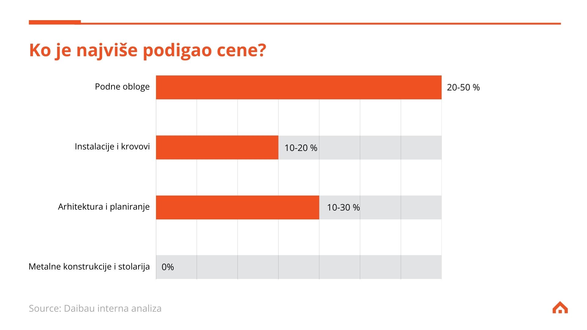 Izvor: Daibau.rs; Podaci prikupljeni na osnovu saradnje sa 16.000 aktivnih preduzeća iz oblasti projektovanja, izgradnje i pružanja usluga uređenja; podatke moguće koristiti uz saglasnost Daibau.rs